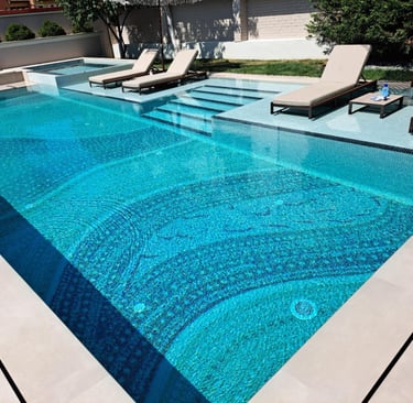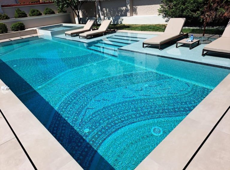 Glas-Mosaikfliesen: Diese Fliesen glänzen und reflektieren das Licht, wodurch der Pool optisch tiefer wirkt.